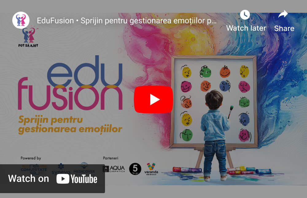 Dacă vrei să afli mai multe despre proiect, te invităm să urmărești pagina noastră de Facebook sau să descoperi mai multe detalii pe edufusion.ro. Hai să construim împreună un spațiu în care copiii se descoperă, își înțeleg emoțiile și capătă încredere în ei.